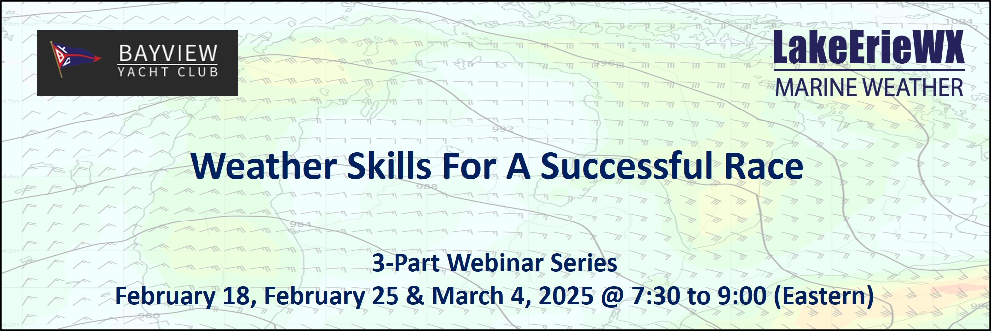 Doing well in  a long-distance race such as the Bayview Mack or Chicago Mac demands teamwork,  endurance, and a routing strategy based on an accurate weather forecast. Developing  a competitive strategy requires an understanding of basic weather forecasting  principles, a familiarity with weather resources, and a working knowledge of  modern routing software. This three-part webinar series is  designed for sailors who are relatively new to long-distance racing or  experienced competitors who would like to refresh their skills before the  season begins.