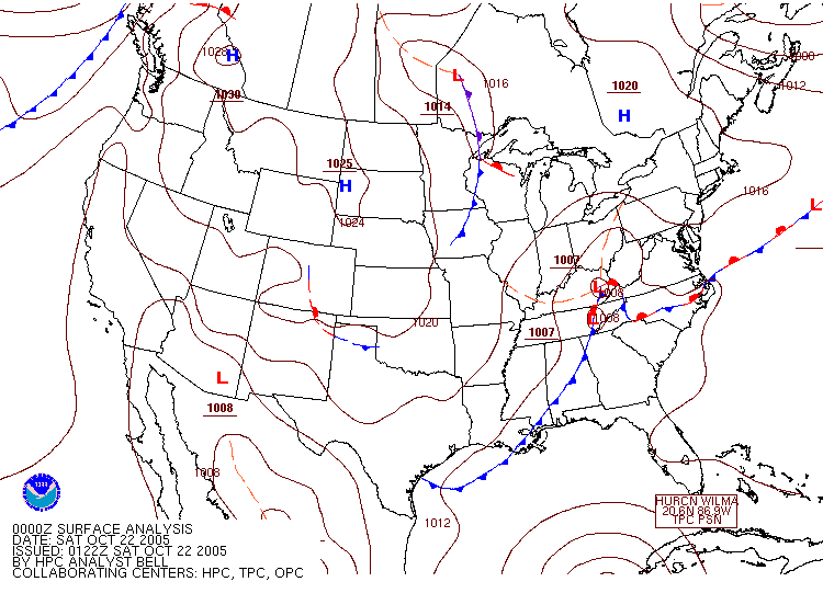 Surface analysis maps from October 22 to October 24, 2005. Compiled from images from NOAA. |